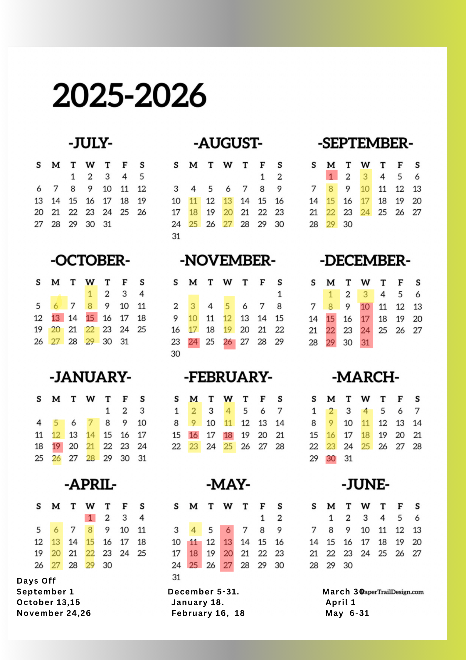 2025-2026 Calendar